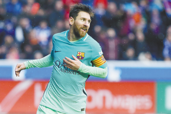 西甲联赛 巴萨大胜阿拉维斯 新华社马德里2月11日电 西甲第22轮11日展开数场对决。皇家马德里客场以3∶1的比分战胜奥萨苏纳,巴塞罗那则在客场六球大胜阿拉维斯。 皇马本轮做客埃尔萨达尔球场。克·罗纳尔多(C罗)、伊斯科和巴斯克斯分别进球,为球队在积分榜上以1分优势保住头名。队长拉莫斯则在本场迎来自己代表皇家马德里的第500次出场。