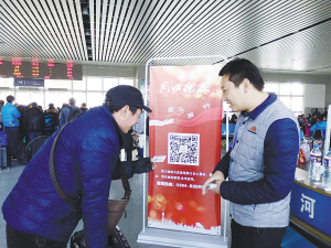 小图:一位旅客主动扫二维码,关注周口晚报官方微信。