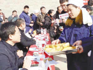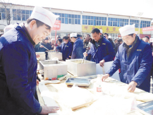 揉面、擀片、切条、下锅、出锅,一根根色泽金黄、口感醇香的油条新鲜出炉……2月10日,在商水县邓城镇第六届炸油条大赛上,靠炸油条走上致富路的“油条大咖”会聚一堂,纷纷拿出自家“绝活”。经过近3个小时的激烈角逐,来自该镇程寨村的陈争伟夺得了大赛冠军。据了解,邓城镇是远近闻名的“炸油条镇”,镇上青壮年纷纷走南闯北“炸油条”,全镇2万多农民每年“炸油条”带来的直接经济效益高达上亿元。