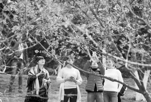 2月13日,市民在南宁市石门森林公园观赏樱花。