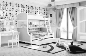 就照度来说,孩子房整体照明亮度应该比成人房高,这样可以让房间显得更温暖、更有安全感,也有助于消除孩子独处时的恐惧感。到了学龄阶段,孩子们需要较长的时间完成作业,所以,写字台应置放在窗户前或光线充足的地方,并采用专业的学习照明灯具,保护孩子们的视力。