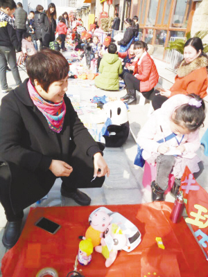 2月18日上午,商水小记者在“跳蚤市场”忙着“淘宝”。