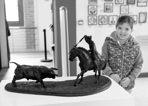 2月18日,在葡萄牙首都里斯本的斗牛场,一个小女孩参观斗牛博物馆。