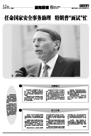 任命国家安全事务助理 特朗普“面试”忙