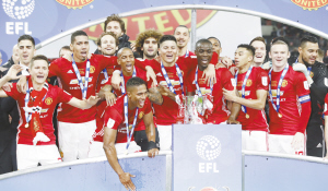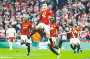 英格兰联赛杯决赛 曼联第五次捧杯 据新华社电 英格兰联赛杯决赛当地时间2月26日在温布利球场举行,曼联凭借伊布在第87分钟的进球,以3∶2绝杀南安普敦,第五次赢得这一赛事的冠军。 开场11分钟,南安普敦队的加比亚迪尼接塞德里克的传中球,门前推射入网,但裁判认为越位在先判进球无效。电视回放显示,边裁判罚错误。 第19分钟,伊布在25米外