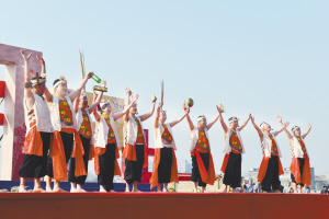 “二月二”当天,除了恭祭伏羲典礼外,第八届中原古韵——中国(淮阳)非遗展演依然是今年朝祖会期间最大的亮点。周口晚报记者在展演现场看到,浙江黄沙狮子、云南彝族跳菜、贵州侗族大歌、辽宁海城高跷、内蒙古马头琴合奏……一个个独具地方特色、尽显古风神韵的世界级、国字号非遗项目的闪亮登场,令人大饱眼福。