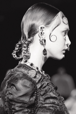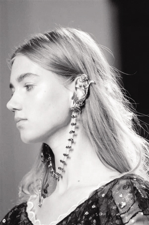 服装上做“减法”的道理在耳饰上也同样适用,以不对称的方式佩戴一只耳环依旧是本季的潮流准则之一。要注意的是在挑选款式时首要元素是醒目,这样才能让整体风格看起来新颖独特以达到展示个性的效果。不必担心太过张扬,Oversize的尺寸、华丽的材质、复杂的元素才足够冲击眼球,更不妨选择哥特或复古宫廷风格,将一边的头发挽到耳后,让耳环掩衬在发丝间若隐若现,伪装漫不经心的时髦心机。