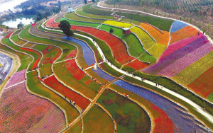 2月25日航拍的江西新余郁金香花田。