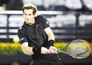 当地时间2月28日,穆雷在比赛中回球。当日,在2017年迪拜网球公开赛男子单打首轮比赛中,英国选手穆雷以2∶0战胜突尼斯选手贾齐里,晋级第二轮。