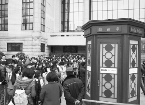 3月5日,上海图书馆知识广场朗读亭前排起长队。