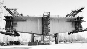 3月7日上午,周口晚报记者来到施工现场看到,两个对称建设的桥墩正在施工。与其他施工现场不同的是,这里从外面看不到多少施工人员。走近之后才发现,桥面的建设由中间两个桥墩分别向两端延伸,桥面是中空结构,很多施工人员正在其中施工。