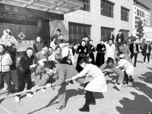 3月8日上午,周口协和骨科医院的300多名医护人员参加了一场庆祝“三八”妇女节的拔河比赛。晚报记者 王凯 摄