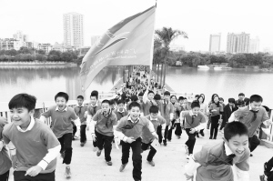当日,广西南宁市滨湖路小学将六年级学生的第一堂“毕业课程”设在南湖公园。学生们通过6公里的徒步挑战,在大自然中尽情享受美好春天。新华社记者 周华 摄