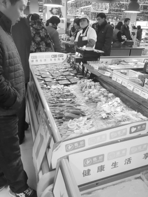 周口晚报记者日前在中心城区万果园、一峰、世纪华联等超市走访发现,烧烤调料、鸡翅、鱿鱼、生鱼片、豆腐等烧烤食材很受市民欢迎。