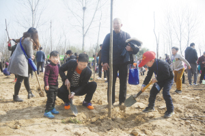 小记者植树热情高涨 共赴文昌生态园 今春再添一片绿 □晚报记者 牛思光 文/图 3月18日,在周口文昌生态园植树点,看到两个小女孩正为自己刚刚种下的小树苗挂心愿卡(如图),周口晚报记者便好奇地上前询问她们俩是不是一家人,得到的答复是一个叫徐怡诺,在周口七一路二小上学,另一个叫贾梓萌,在周口六一路小学上学。 徐怡诺的母亲笑着介绍,徐怡诺和贾梓萌虽