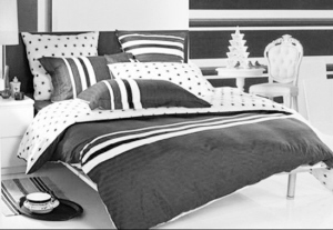 几何风床品一般是在纯色的基础上,作简单的设计。例如在纯色的床品上,以白色线条纵横规划出几何线条;纯白与蓝色的块状拼接,形成具有立体感正方体图案;简单的黑白大条纹相间等。图案大而简约,却因为几何感的突出,而具备浓浓的设计感。色彩一般在3种以内,务求简洁明快,不拖泥带水。块面、色彩、图案均十分突出,赋予空间一种创意设计、个性独特的感觉。
