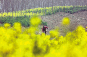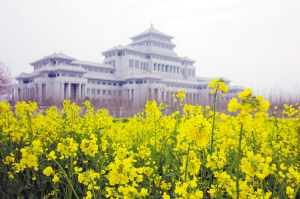 3月21日,周口市文化艺术中心附近,满地金灿灿的油菜花竞相开放,美不胜收。