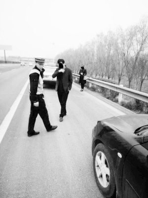 当日下午,市交警支队商周高速周口北站民警魏川、张建斌、李卫旱在巡逻中发现,在应急车道内停着一辆山东牌照的小轿车,一男子站在车前路边,一中年妇女情绪激动,哭哭啼啼往前走。