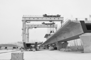 本报讯 以前,市民对郑合高铁周口段的印象,可能还是田野间一座座矗立的桥墩。现在,市民去现场再看建设进度,印象就该改变了,因为我市境内数段高铁施工现场均开始了架梁施工,郑合高铁的雏形开始逐步呈现。