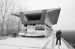 王洪说,“铺桌面”的大致流程是:搬运机把“桌面”从梁场安稳地运到“桌腿”下,由提梁机吊提到高铁桥面上,再由桥上的运梁车运至要架设的位置,最后由架桥机逐次推进铺架。