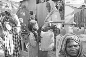 3月22日,在索马里首都摩加迪沙,一名女孩从一处境内流离失所者安置营地的水井取水。