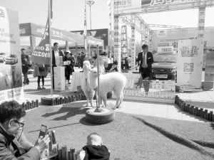 两只羊驼的到来,为车展增加了不少乐趣,商家的人气也随之高涨起来。“车展期间,我们请来的这两只羊驼出场费还不低呢!目的就是为了吸引人气。”周口鹏峰吉利4S店工作人员介绍。
