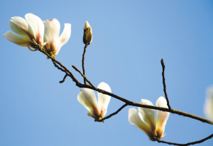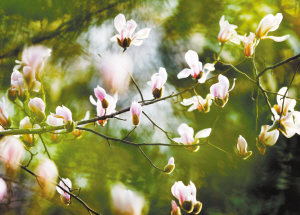 据了解,玉兰花期一个多月,与其他花儿不一样,玉兰花没有绿叶的陪衬,远远望去,映入眼帘的全都是白的、紫的和黄的花朵含笑怒放。