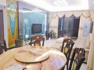 一名网友发来的照片,新居的窗帘、餐桌都是米色调的,但是窗帘的大花和帘头总让人觉得“土”,餐椅中间镶嵌的石纹造型浮夸,没有高档的感觉。
