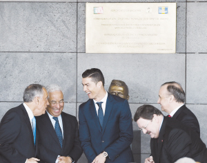 当地时间3月29日,克里斯蒂亚诺·罗纳尔多(中)在更名仪式上。当日,葡萄牙马德拉机场正式更名为克里斯蒂亚诺·罗纳尔多机场,以表彰葡萄牙足球巨星克里斯蒂亚诺·罗纳尔多为其家乡带来的荣耀。 新华社记者 张立云 摄