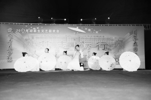 3月29日晚7时,周口市高级技工学校举办以“放飞青春梦想 勇攀大国工匠”为主题的迎新生晚会,由学校师生自编、自导、自演的歌曲、舞蹈、小品、杂技等节目博得了现场观众的阵阵掌声。记者 刘华志 摄