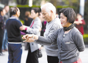 3月29日,一些老年居民在上海市中山公园内跳健身舞。