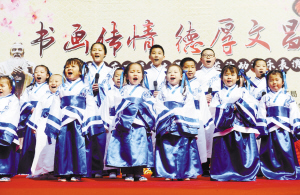 3月30日,孩子们在活动现场诵读《弟子规》。