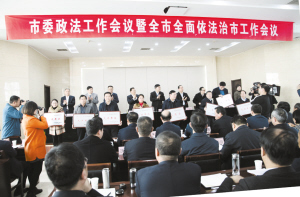 一是推进工作面临重大机遇。党的十八大以来,以习近平同志为核心的党中央,把全面依法治国放到关系实现“两个一百年”奋斗目标和中华民族伟大复兴中国梦的高度来认识,把政法工作摆到党和国家大局中来谋划,作出一系列战略部署。省委、省政府高度重视平安河南建设,把推进全面依法治省摆在突出位置,抓住重点,把握关键,强力推进。前不久,中央、省委相继召开了政法工作会议,习近平总书记作出重要指示,谢伏瞻书记作了重要讲话,为我们做好新形势下政法工作和推进全面依法治市指明了方向、提供了遵循、营造了氛围、带来了机遇。