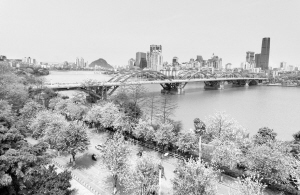 柳州市文惠桥南的紫荆花盛开(4月12日摄)。