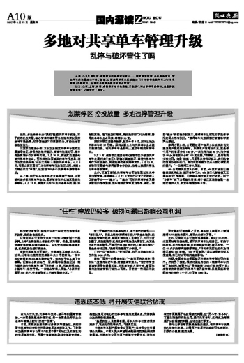 多地对共享单车管理升级