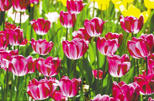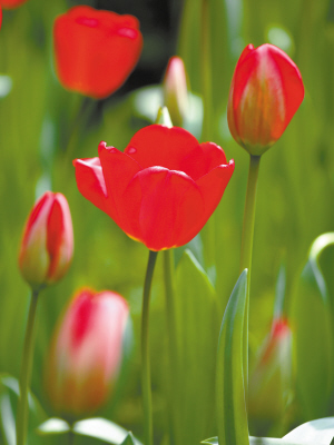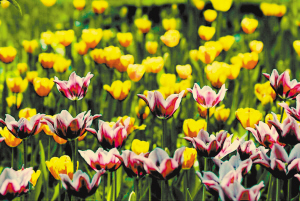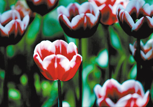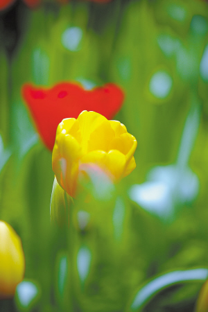 4月24日,我市春光明媚,最高气温达到28℃。在周口市区一校园里,竞相开放的郁金香吸引众多游客前来观赏。
