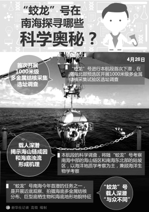 “海山链潜次的主要科学目标,是要推进南海海山链成因这一重大科学问题的解决。”石学法说,通过对“蛟龙”号下潜在海山上精确采集到的岩石样品,开展详细的年代学、矿物学和地球化学等研究,可望阐明南海新生代扩张期后在遗迹扩张中心处海山链的成因,验证之前我国科学家提出的假说,进一步揭示南海扩张期后的构造演化规律。