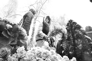 4月26日,在白俄罗斯首都明斯克,一名女子向切尔诺贝利核事故遇难者献花。
