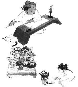 作者左思并没有直接说她们如何“娇”,而是集中描写她们种种情致的调皮,通过她们的一举一动、一颦一笑、一动一静等,来表现她们的娇憨性格,“字字是娇女,尽情尽理尽态”。(语出明代人钟惺、谭元春辑录《古诗归》)《娇女诗》中所写的学妆、握笔、执书、纺绩、图画、理盘槅、吹茶鼎等事,都是大人的正经事,可是女孩们偏偏样样都要学着干,这些正经事务一旦到她们手里,就成了大有玩头的游戏。诗人左思正是巧妙地把这些正经事务穿插在她们的日常活动中,借此写出她们的天真稚气和任性胡闹。