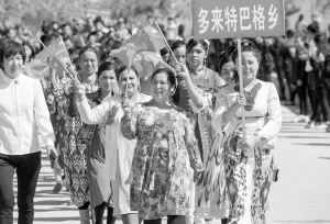 5月8日,来自喀什市多来特巴格乡的新员工在新疆喀什市经济开发区深圳产业园参加就职仪式。