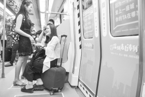 5月8日,乘客搭乘深圳地铁“表白专列”。