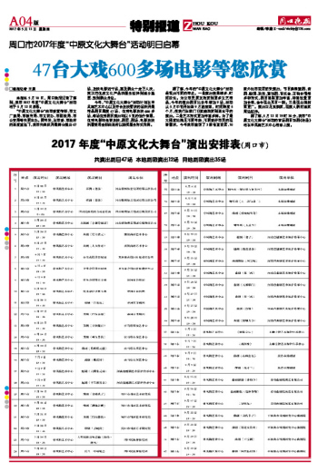 2017年度“中原文化大舞台”演出安排表(周口市)