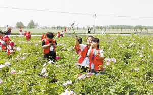 当日上午,小记者和辅导老师首先到达沪谯药业中药材种植基地,观赏最具亳州特色的中药品种——芍药花种植基地。小记者徜徉在花海中,陶醉在花香中,聆听着向导介绍芍药花的药用和食用价值。中午的美食更是让小记者开心不已,亳州特色的饮食文化和地道的农家美食焦丸子、合碗牛肉、连汤肉丝等让小记者食欲大增……
