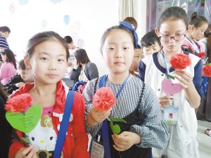 5月14日,是母亲节。本报联合四方国际教育(商水校区)共同举行了“商水小记者手工制作康乃馨母亲节敬献母亲”公益活动。小记者聆听专业老师讲解后,纷纷动手制作。大家或切磋,或询问,现场暖意融融。为激励先进,主办方还特意邀请家长评委现场评出一、二、三等奖。不少小记者制作完康乃馨,还给妈妈写下了祝福卡片。“这是我收到孩子送来的最珍贵的礼物,太让我感动了。”拿着孩子亲手做的康乃馨,有些妈妈激动得双眼含泪。晚报记者 马治卫 摄