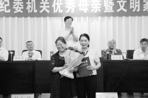 本报讯 5月12日,在市纪委机关举办的“传承良好家风争做忠诚干净担当纪检标杆”暨表彰优秀母亲文明家庭活动中,市委常委、市纪委书记王富兴等向评选出的机关优秀母亲、文明家庭代表颁奖(如图)。当日的表彰会上,还邀请中国散文学会会员、情感专栏作家柳韵以《孝行天下 爱传万家》为主题,作了一场精彩、生动的专题讲座。