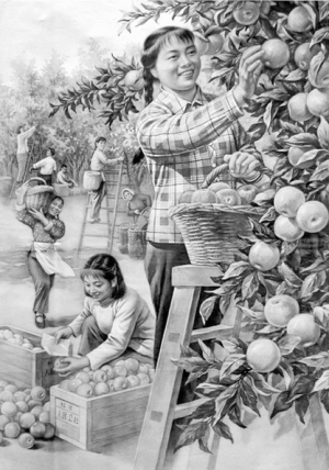 苹果收获的季节,也是我们最繁忙的季节。那时候泛区农场的苹果是有出口任务的,主要出口到苏联。每到收获的季节就要动员许多学校的学生,前往苹果园参加采摘、分级、包装等出口工作。我们本场职工主要负责讲解采摘方法和挑选出口果实的分级原则。我的宣传阵地也随之搬到了苹果园里。记得那时通过广播反复宣传的是,毛主席说:“锦州那个地方出苹果,辽西战役的时候正是秋天,老百姓家里有很多苹果,我们的战士一个都不去拿。”用毛主席的话约束大家不要随便吃苹果。其实,这也只是一种宣传的需要,纪律还是要讲的么。但我们毕竟不是有着严明纪律的军人,哪有每天坐在堆积如山的香喷喷的苹果旁边,还能忍住不吃的。说实话那时候苹果的味道,比现在的好多了。如今回忆起那段充满童趣的时光甚是开心。