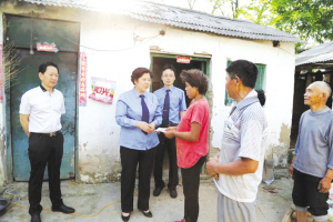 本报讯 5月12日,淮阳县检察院检察长严新爱一行来到该县葛店乡,对被害人查某的女儿进行司法救助,发放救助款1.4万元(如图)。