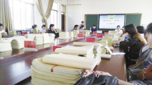 为给广大教师搭建相互学习,共同进步的平台, 近日,西华县昆山学校小学部举办了导学案、作业、批改记录、教师钢笔字等常规大展览,从而促进该校教育、教学质量的进一步提高。图为教学展现场。晚报记者 张志新 通讯员 任冬梅 李艳 摄