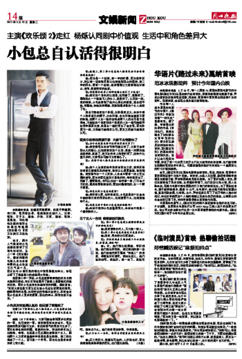 杨:压力特别大,都貌似天仙的,人好戏也好,因为我相信侯鸿亮导演的团队,他们眼光独到。(王磊)