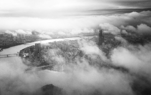 5月23日,一场大雨过后,广西柳州柳江两岸云雾升腾,如梦似幻(航拍照片)。